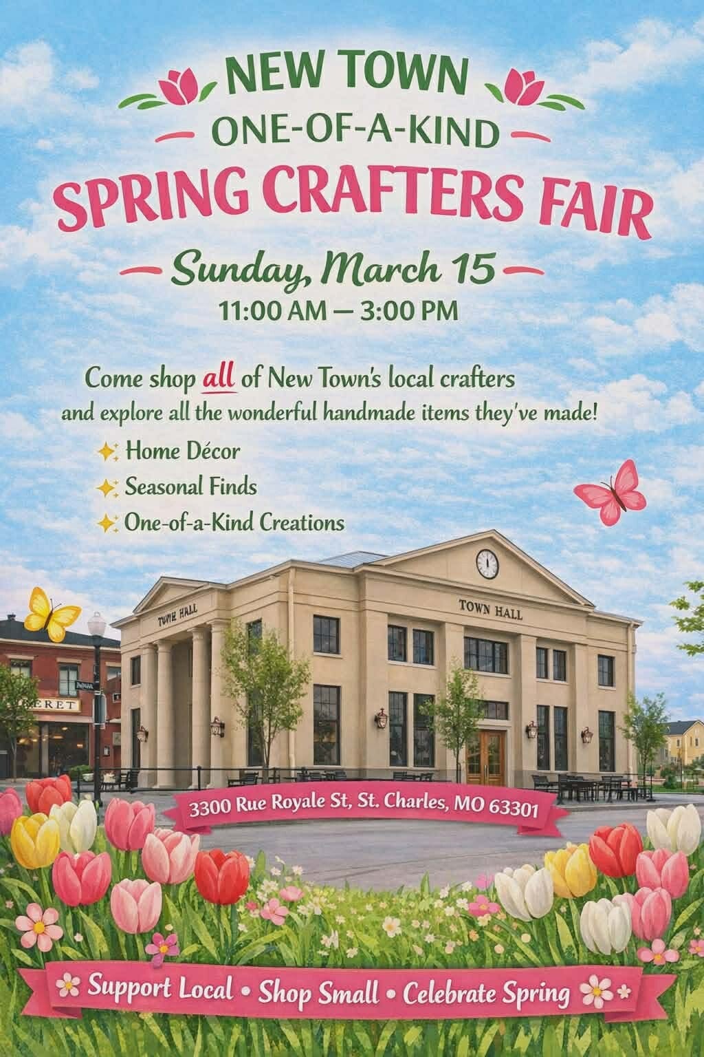 March 15th from 11:00AM to 3:00PM In the New Town Town Hall 3300 Rue Royale St. Charles, Mo 63301