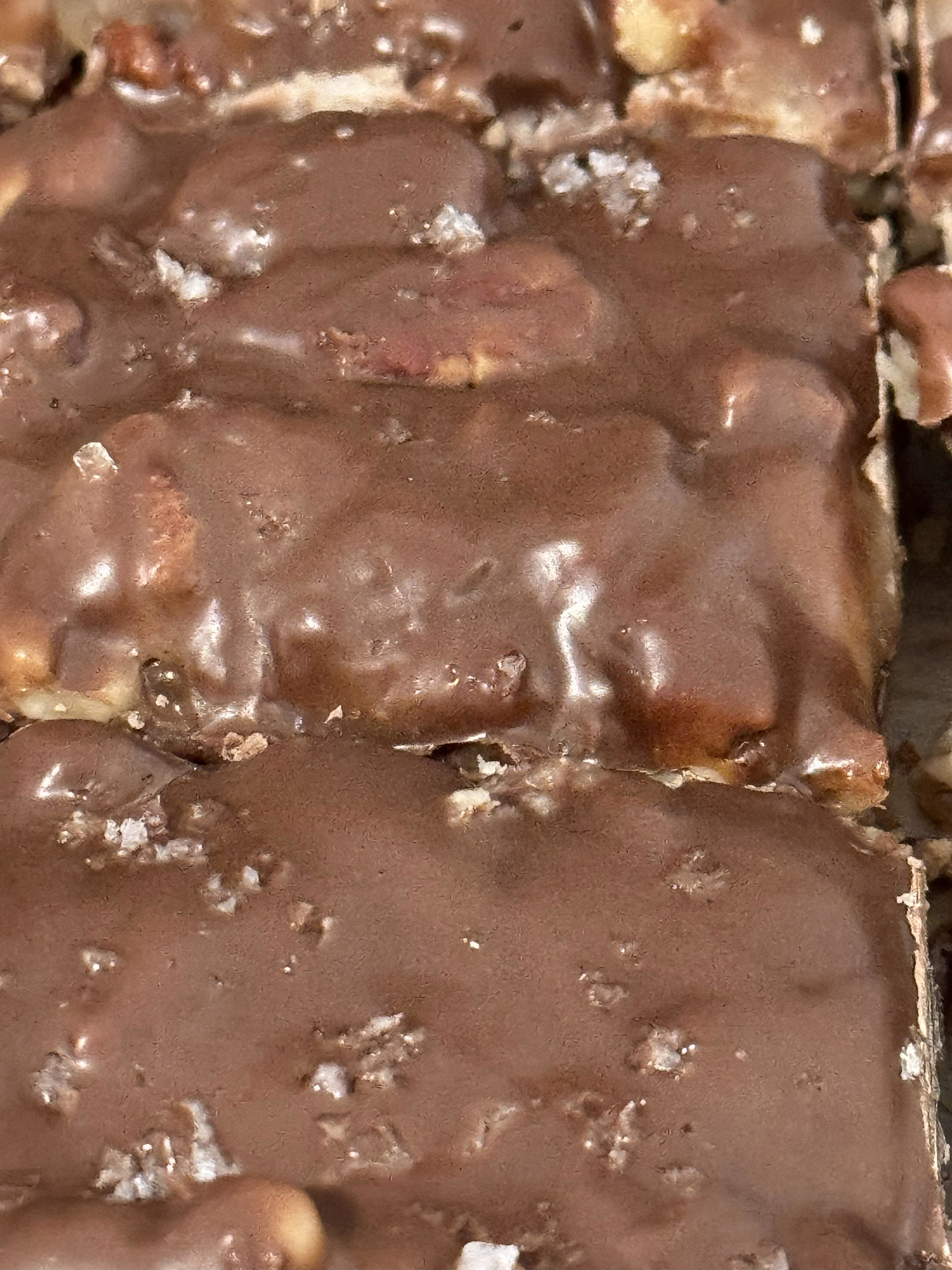 While our brittle recipe remains consistent, the choice of nuts creates a delightful variation in flavor profiles. Our Pecan brittle tastes like praline pecans